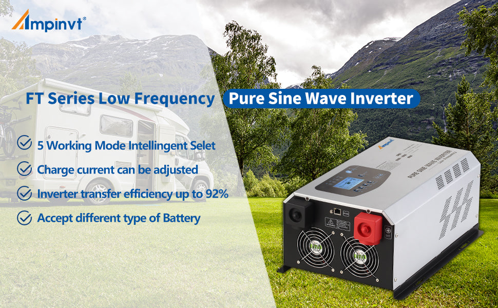 - Este inversor de onda sinusoidal pura es una combinación de inversor, cargador de batería e interruptor de transferencia automática de CA. La alta eficiencia de transferencia es superior al 90 %, aísla completamente la interferencia de sobretensiones de entrada y salida de voltaje y corriente, es resistente a impactos, tiene una gran capacidad de carga, estabilizador AVR integrado y salida de onda sinusoidal pura estable y continua.
