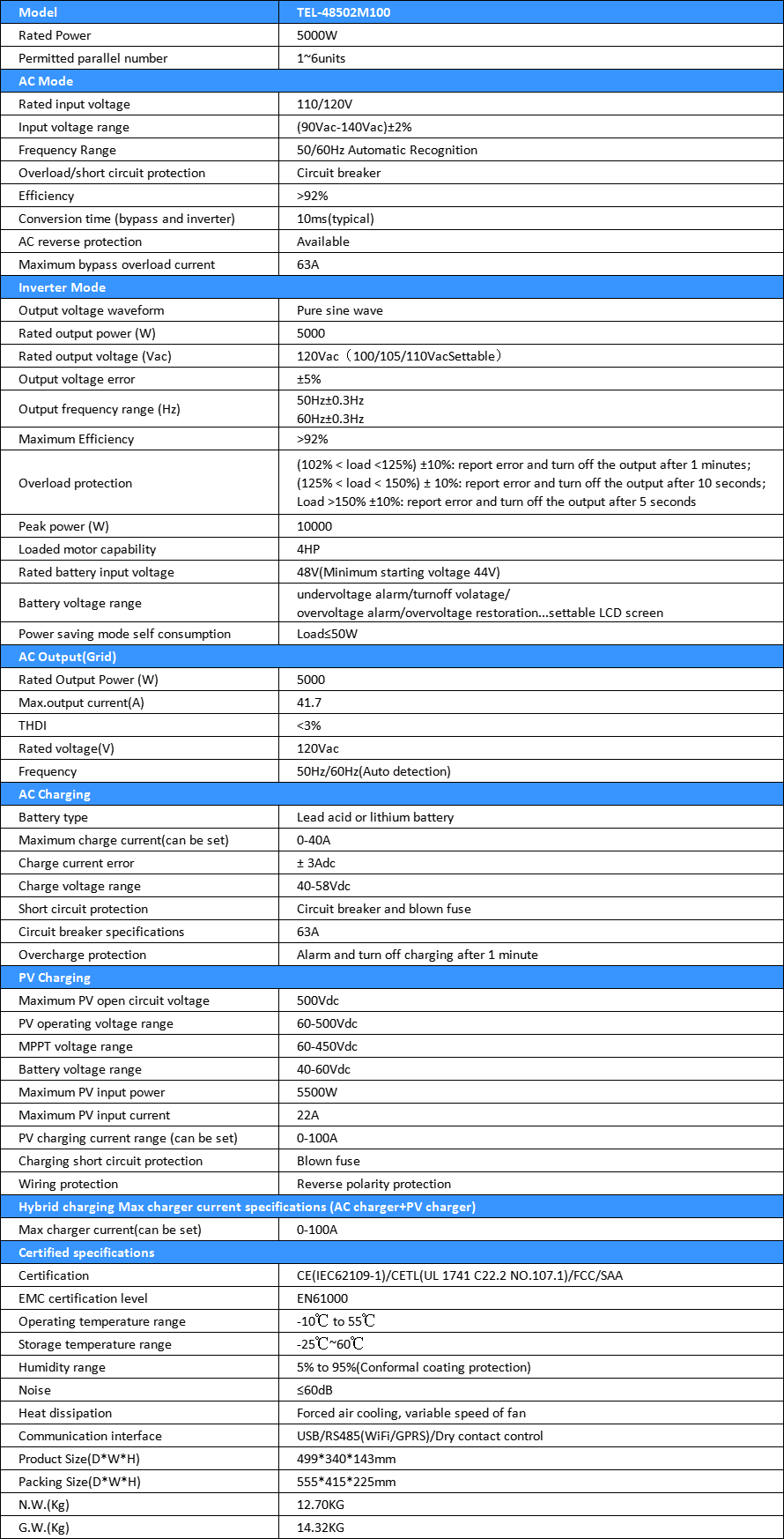 - This inverter can ONLY work with 48V battery system.
